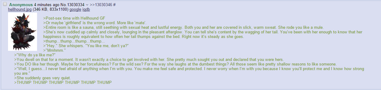 >>80684 What happens if you have two hound wives? Do they agree to share, or are they constantly vying for dominance?
