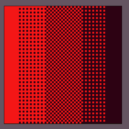 >>88324 >By grid hatching I mean the more extreme form of dithering on the Sand Elemental arms and Cloud Elemental breasts where the patterns are very clear 'X' or 'O' shapes supported separate with lanes of a 'grid'. I see. So in conclusion, more complex dithering is usually left for backgrounds and texturing, while simpler dithering(something like bayer) is used for gradients and shading. I understand the basics of hue shifting, shift to the blue and desaturate for shadows, and shift to yellow and saturate for highlights etc. I was more looking for what colors to select or avoid, in general terms, so that i can get that desaturated-yet-highly-contrasting colorscheme. I'll try to draw the sulphur sea elemental later and you can tell me about what i could do to the color pallette to improve it.