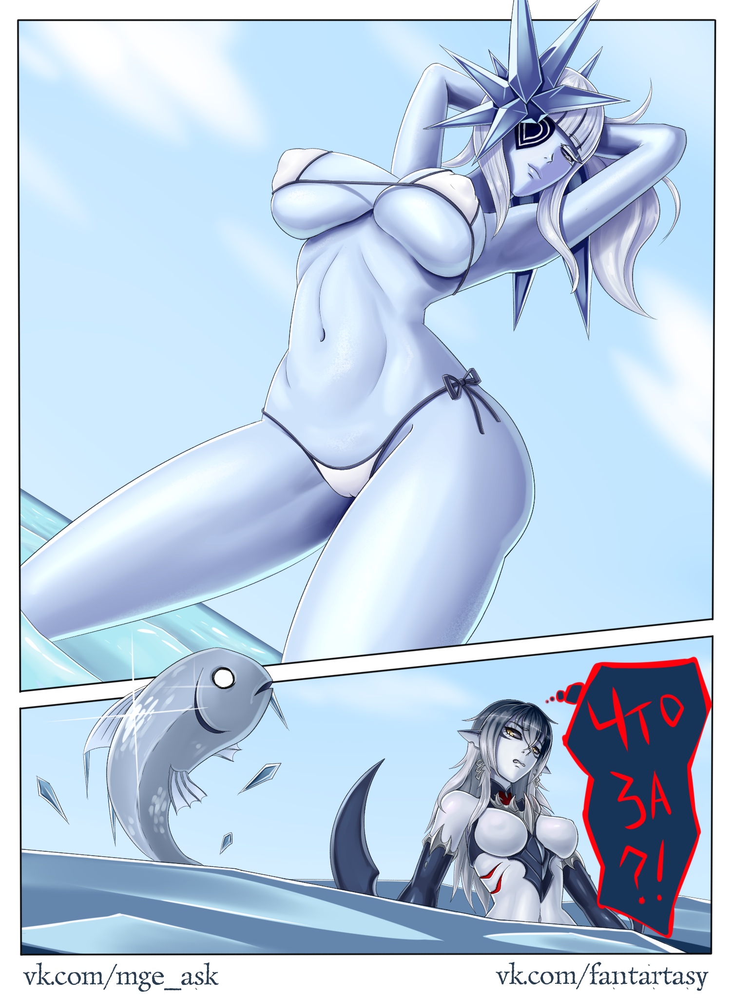>"since men are scarce and this is a new enterprise we have yet to start producing and supplying our clients, but with your help I'm pretty sure we could satisfy our client's needs... and our own" the CEO says while removing the little amount of clothing she has
