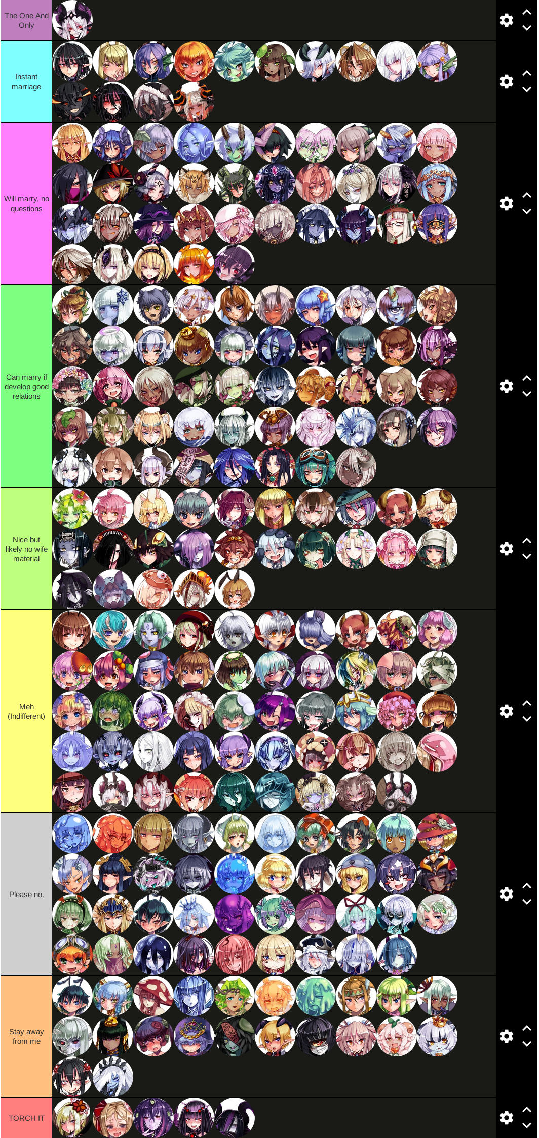 Blatantly copying a thread from Smug. Because its fun! Sorter: https://kikasuru.github.io/mge-charasort/ Tier list(slightly out of date): https://tiermaker.com/create/mge-344539 Doing the whole sorter takes like an hour (1000+ choices) so take your time, or limit the species. But doing the whole thing gets more fun the deeper you go. Its also neat seeing the end result and ponder your taste in context of it.