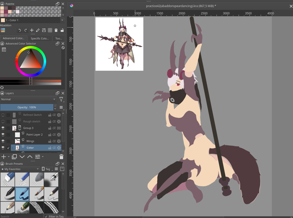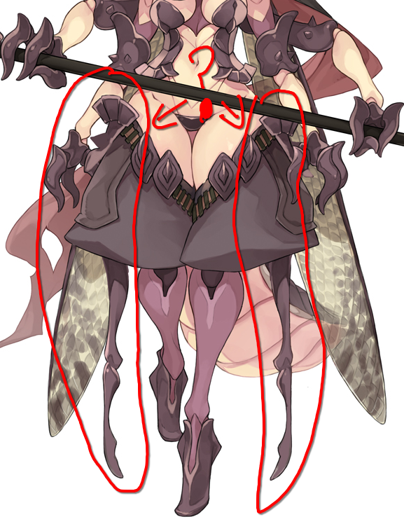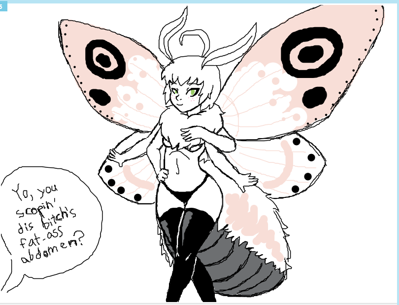 Abaddon are among the largest monsters so far seen in the profiles. A husband's designated spot when she is flying around would be to sit on her insect abdomen the way one might sit on a chair. (source: Personal communication with KC)