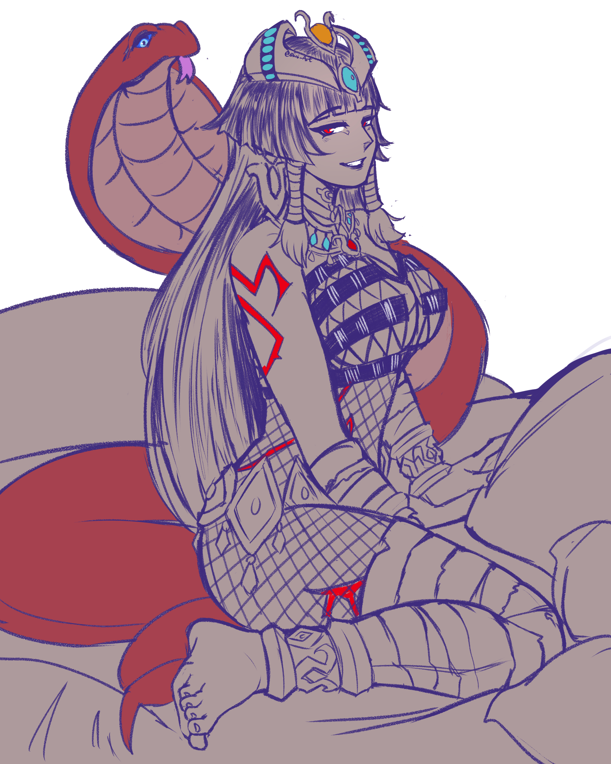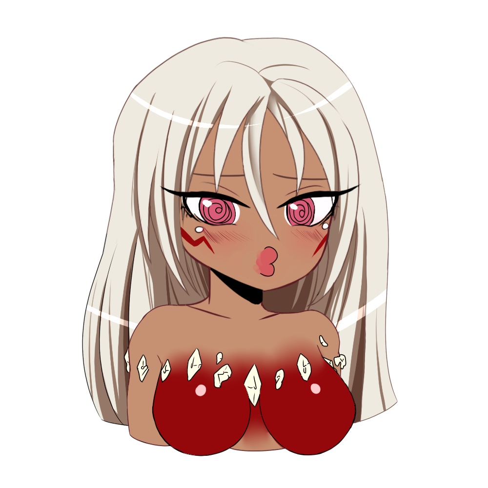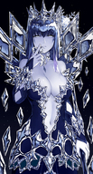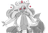 >she doesn’t say anything, but this maniacal grin and those bright-red eyes tell you more than enough