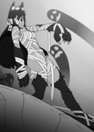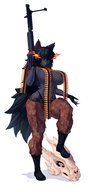 >suddenly, a beastly howl shakes the nightly street, following by automatic fire