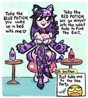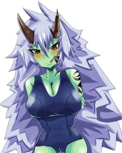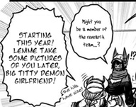 >the next moment, you're being approached by a demon in a crimson swimsuit