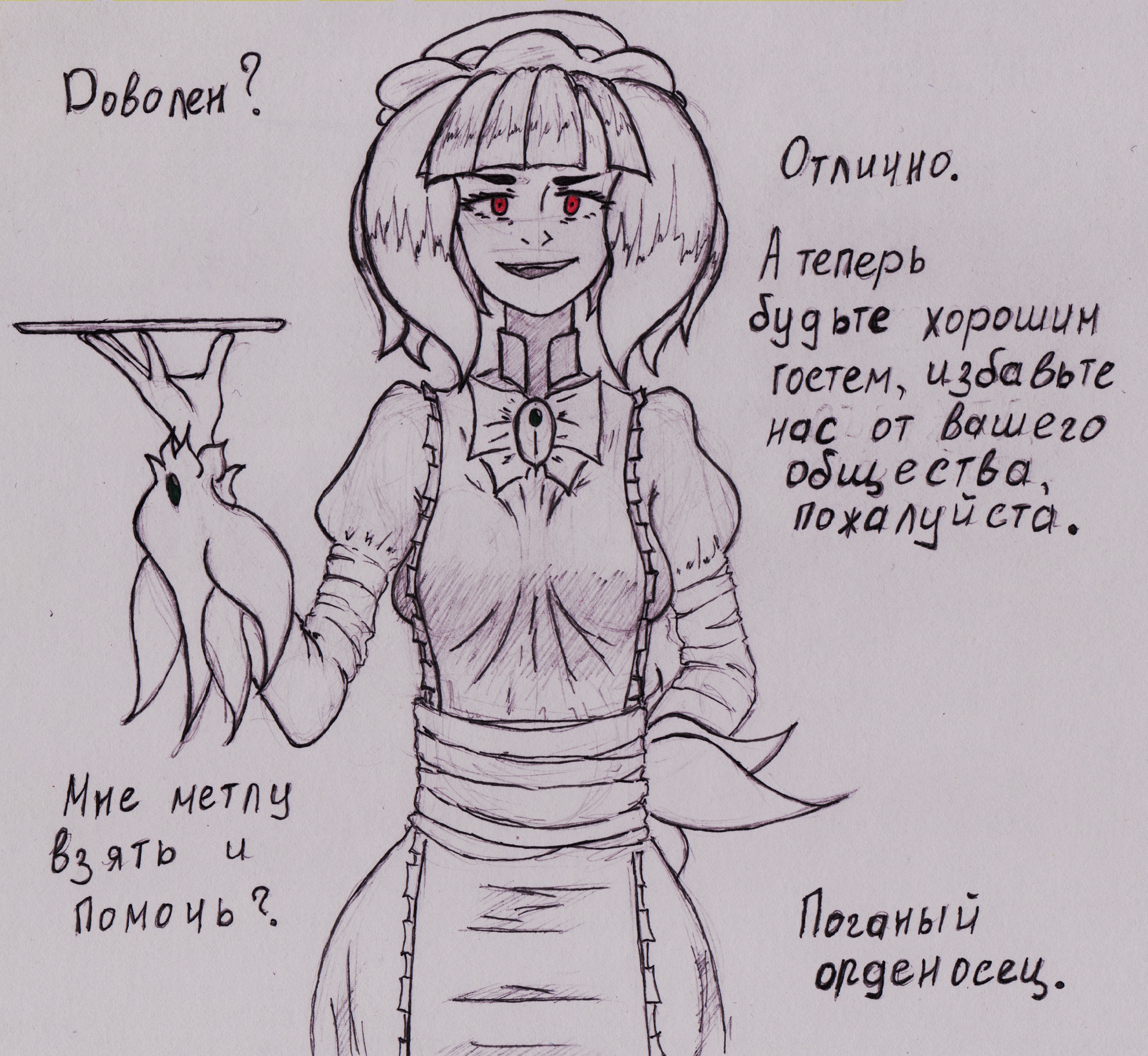 >she offers you a paper and an ink pen