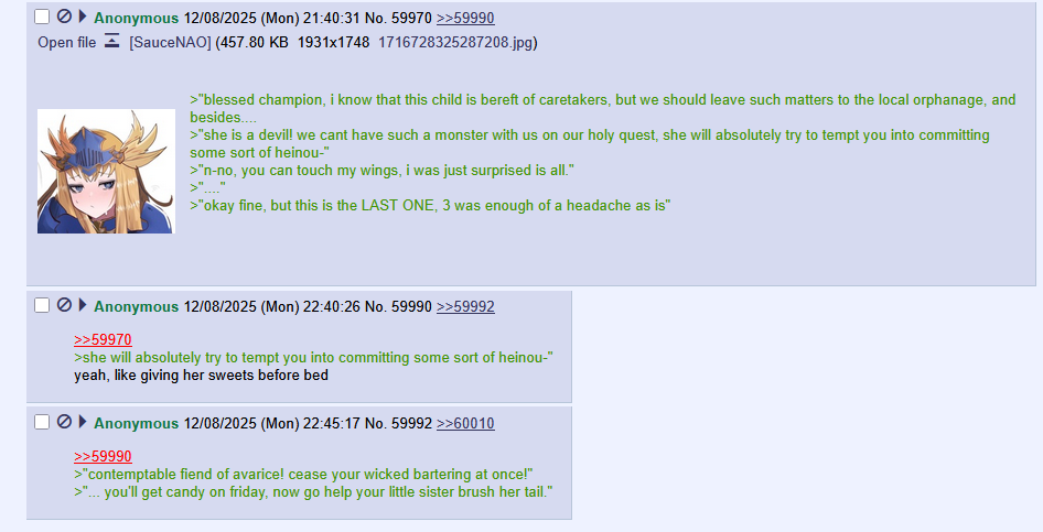 <"Anon should commit ritual erospukku in front of her" Said the irate mantis clamly