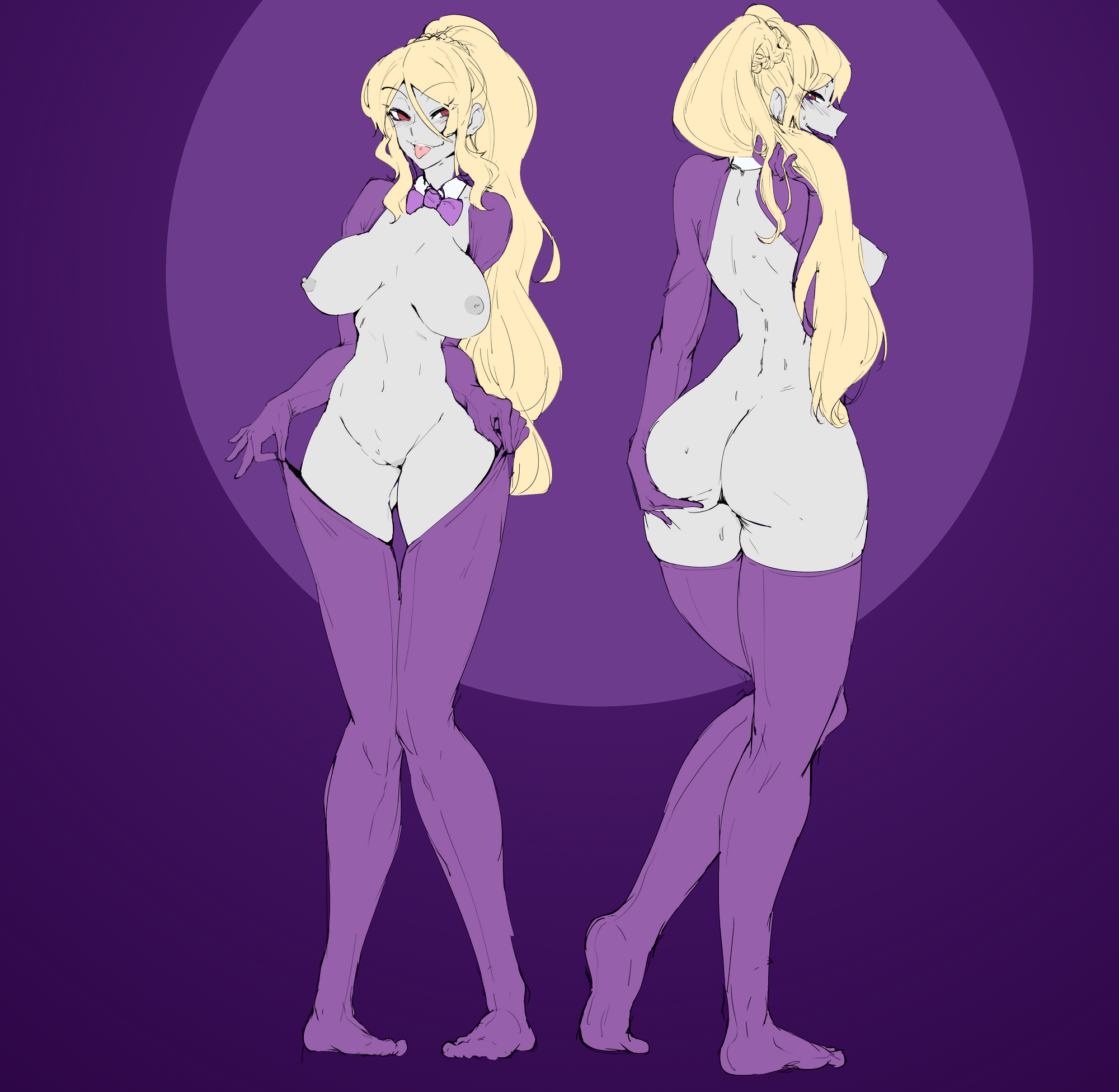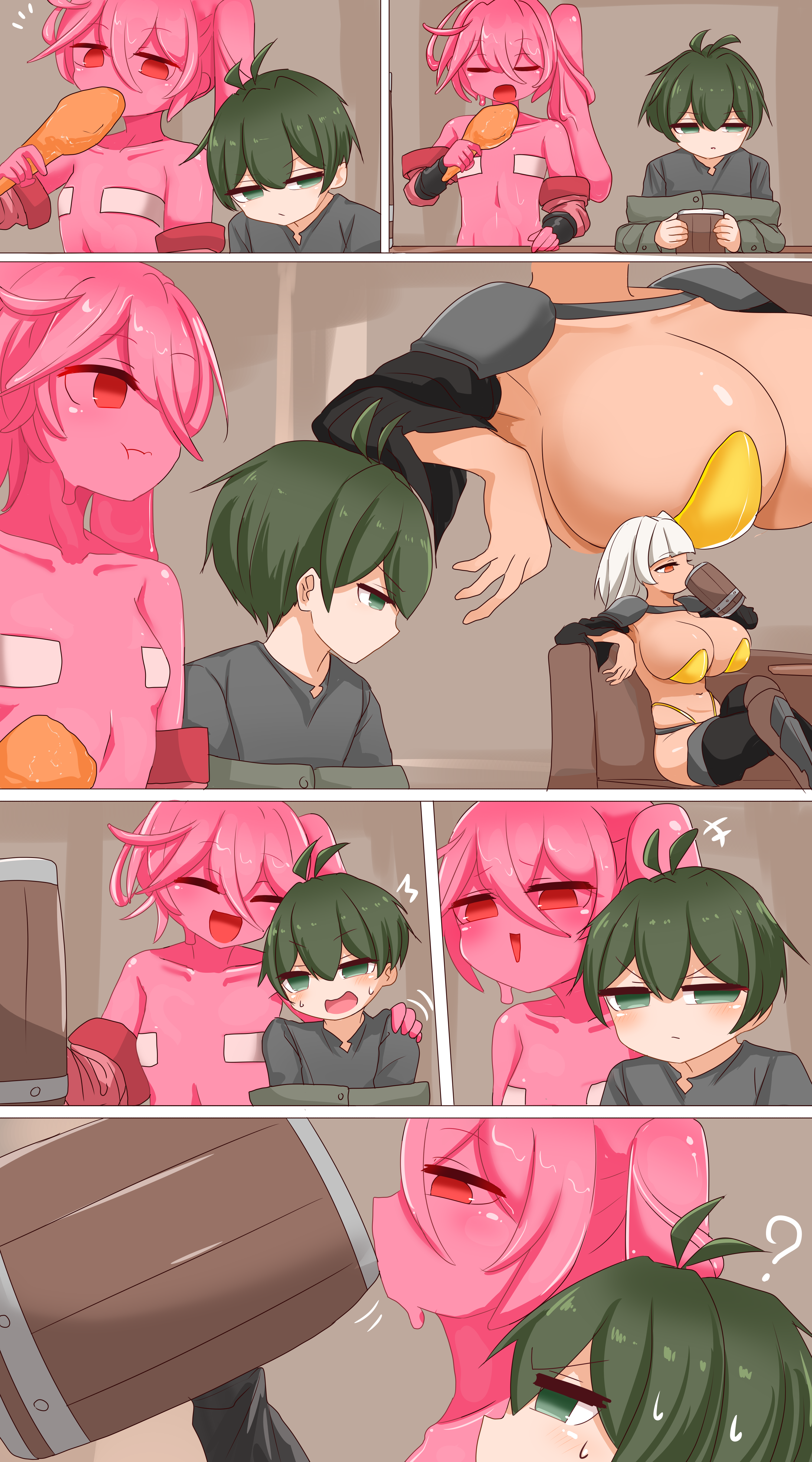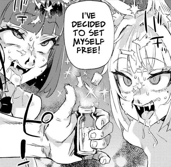 >"since men are scarce and this is a new enterprise we have yet to start producing and supplying our clients, but with your help I'm pretty sure we could satisfy our client's needs... and our own" the CEO says while removing the little amount of clothing she has