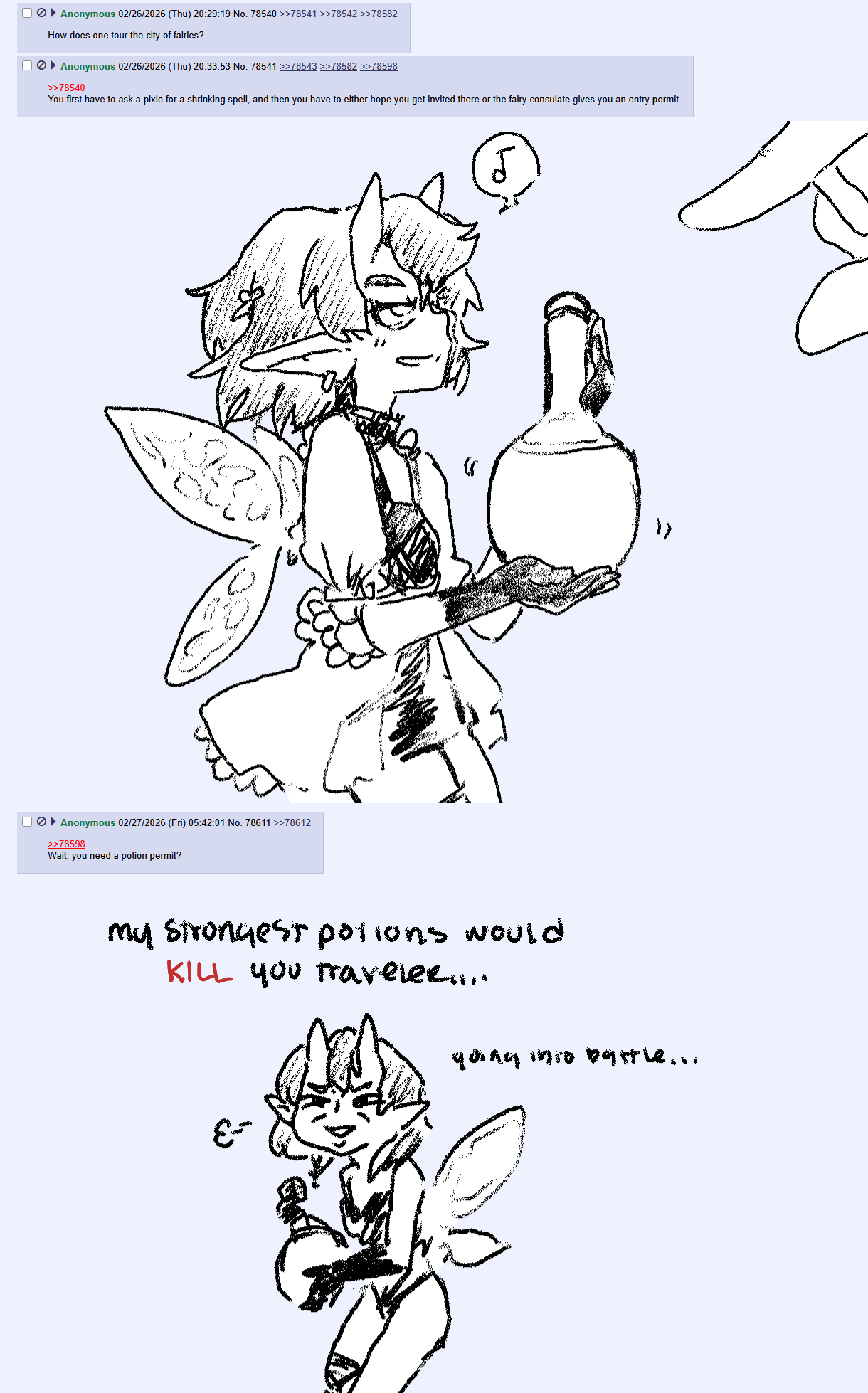 >the secretary greets you, a cat hag with an stunning body, lightly dressed for a company that should give several PPE but you wouldn't argue with monster culture