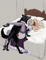 toss me around…~” The fly’s other hand reaches over, and begins to trace along your side with her finger, moving closer to your belt line. Another loud and prolonged grumble roars out from your stomach, stopping her in her tracks. Her shoulders shake, lips quivering for only a moment, before she breaks out laughing. “Jeeeeez! Okay, okay! Food first,